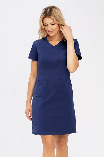 Sukienka medyczna jasnogranatowa SU 50.2, krótki rękaw, Comfort Stretch
