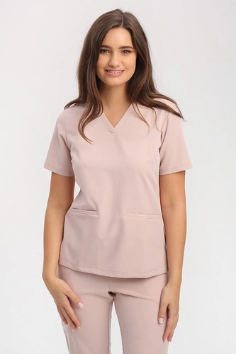 Women's loose medical sweatshirt BL 63, nude beige, short sleeve, scrubs Elegant Stretch