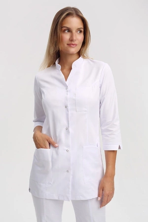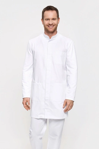 Sewn from white fabric, the collection is distinguished by its beautiful satin weave, considerable elasticity and pleasant softness. The garment is resistant to high temperatures, chemicals and tearing. Tested and approved for industrial laundering.