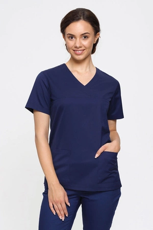 Women's Scrub Top navy blue BL 62, Elegant Stretch
