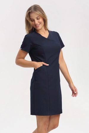 Medical dress SU 62, navy blue, short sleeve, Elegant Stretch