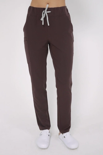 Women's medical jacket with universal neckline ZA 08, chocolate, short sleeve, Elegant Stretch
