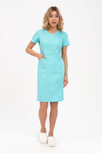 Medical dress SU 50, light turquoise, short sleeve, Comfort Stretch