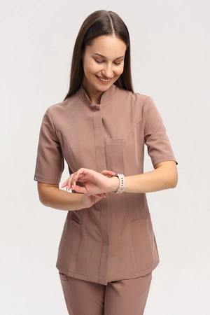 Żakiet medyczny damski ze stójką ZA 19, beż nude, krótki rękaw, Elegant Stretch