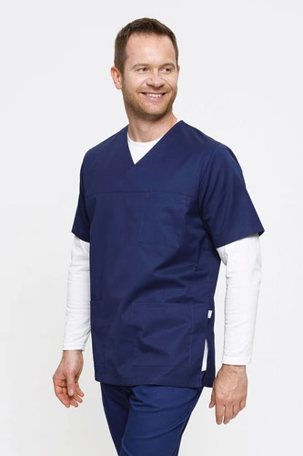 Bluza medyczna męska granatowa BL 56, krótki rękaw, Premium