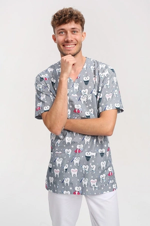 Bluza medyczna męska we wzorki ząbki BL 56, krótki rękaw