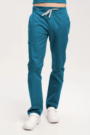 Oferowane przez nas spodnie medyczne męskie to różnorodne alternatywy, zarówno jeśli mowa o kroju, ale i użytych w produkcji barwach. Przede wszystkim, w przypadku określonych modeli, masz spore możliwości właśnie, jeśli chodzi o kolory. Turkus, odcienie chabrowe, bordo, ale także klasyczna biel oraz szarości. Dostosuj outfit do swojego charakteru, a może i nawet wystroju gabinetu, w którym przyjmujesz pacjentów. Drugim, ważnym aspektem są określone kroje. W asortymencie dostępne są między innymi spodnie medyczne joggery męskie. To charakterystyczny wyrób, który wyróżnia zwężana nogawka (często zakończona ściągaczami), przydatny na przykład w pracy fizjoterapeutów. Bez względu na to, czy szukasz spodni medycznych męskich białych, czy bordo, slim, czy nieco szerszych - z pewnością trafisz tutaj na model, który będzie odpowiedni właśnie dla Ciebie!