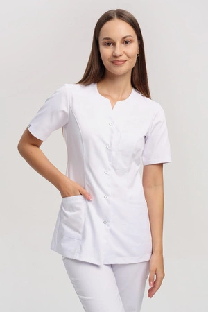 Żakiet medyczny damski biały z uniwersalnym dekoltem ZA 08, krótki rękaw, Premium