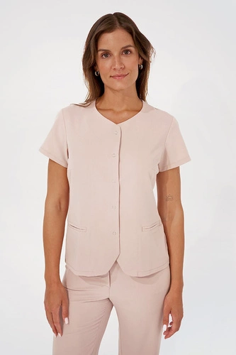 Żakiet medyczny damski ze stójką ZA 19, beż nude, krótki rękaw, Elegant Stretch