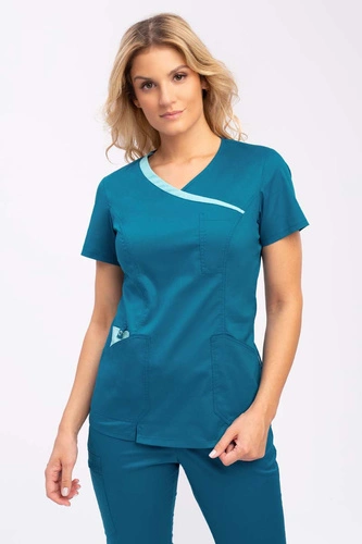 Bluza medyczna damska turkus ciemny BL 50 z kontrastowymi dodatkami, krótki rękaw, Comfort Stretch