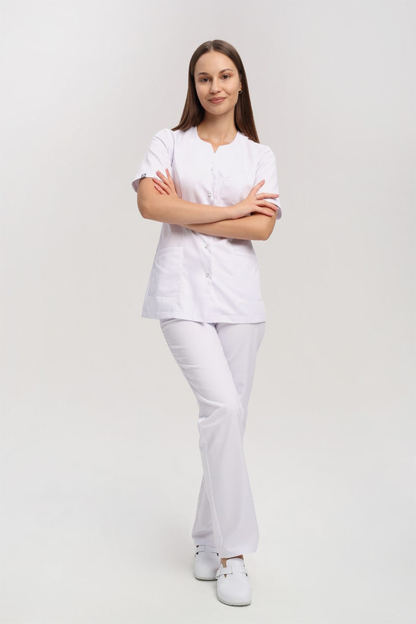 Żakiet medyczny damski biały z dekoltem ZA 08, krótki rękaw, Premium Stretch