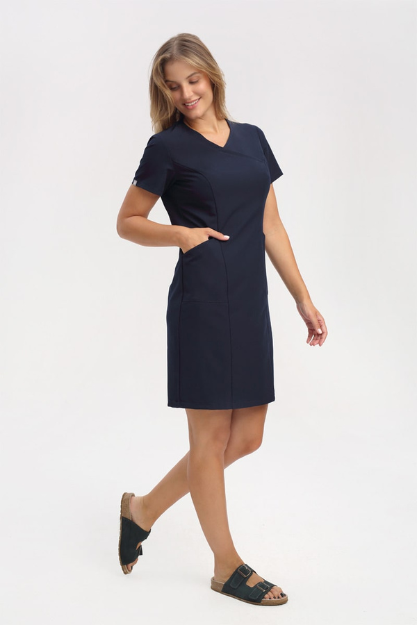 Sukienka medyczna granatowa SU 62, krótki rękaw, Elegant Stretch