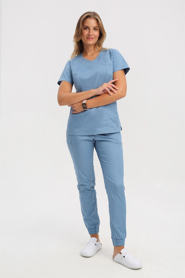 Bluza medyczna damska BL 60, denim, krótki rękaw, Comfort Stretch